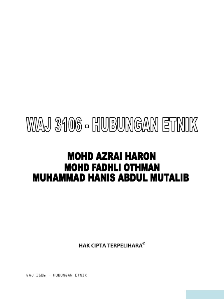 Related : Modul Hubungan Etnik Edisi Kedua - .hubungan etnik (2 jam kredit) ethnic relations (2 credit hours ) sinopsis/synopsis:.